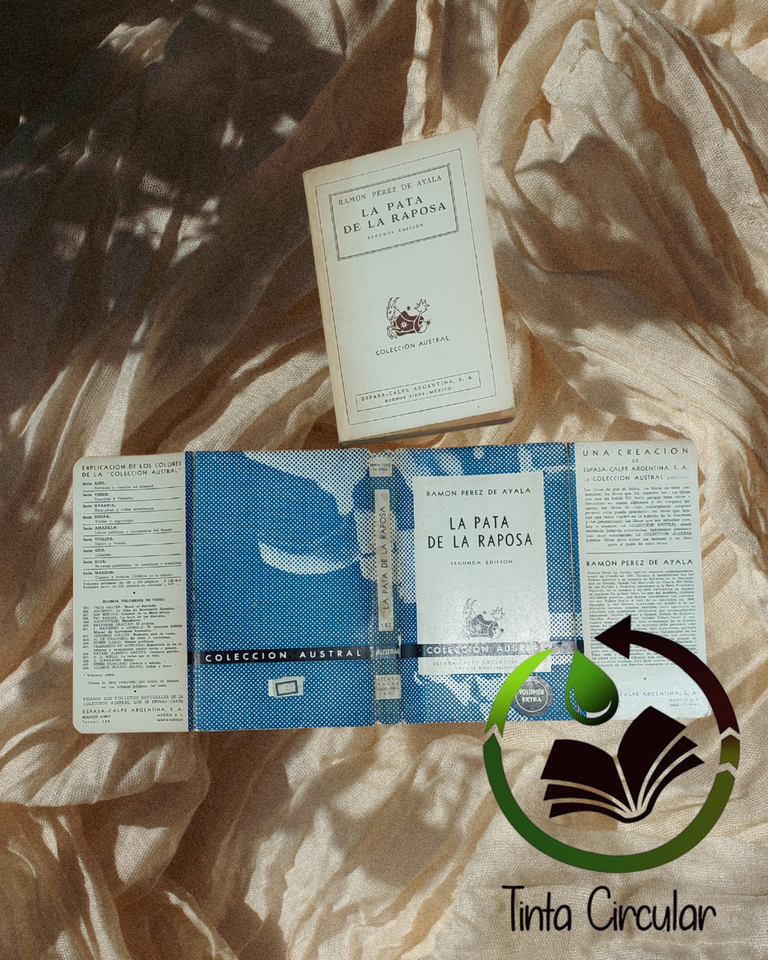 En la página de cortesía aparece un año escrito a mano —1956— acompañado por un nombre ya casi ilegible, como si el tiempo lo hubiera soplado suavemente. Lleva también una etiqueta antigua de una librería de usados, pequeña brújula de su viaje previo. Conserva sus cubiertas originales; los bordes se han oscurecido con los años, pero el estado general es impecable, firme y luminoso, como un libro que ha sabido envejecer con elegancia.