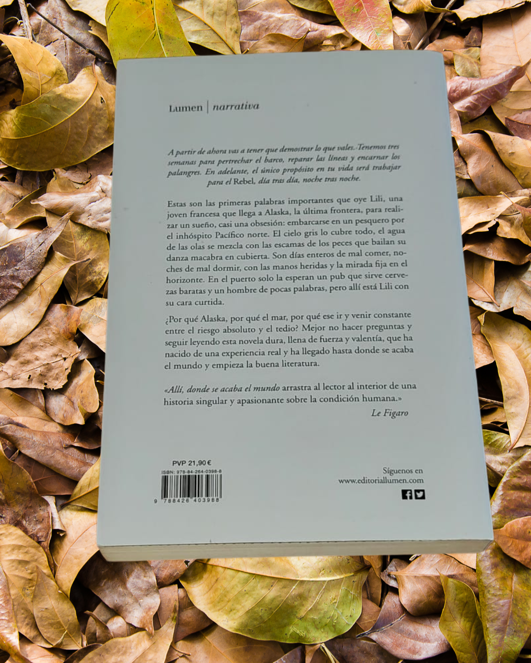 Estas son las primeras palabras que oye Lili, una joven rancesa que llega a Alaska, la última frontera, para realizar un sueño, casi una obsesión: embarcarse en un pesquero por el inhóspito Pácifico Norte. El cielo gris lo cubre todo, el agua de las olas se mezcla con las escamas de los peces que bailan su danza macabra en cubierta. Son días enteros de mal comer, noches de mal dormir, con las manos heridas y la mirada fija en el horizonte. En el puerto solo la esperan un pub que sirve cervezas baratas y un hombre de pocas palabras, pero allí esta Lili con su cara curtida. ¿Por qué Alaska, por qué el mar, por qué ese ir y venir constante entre el riesgo absoluto y el tedio? Mejor no hacer presguntas y seguir leyendo esta novela dura, llena de fuerza y valentia, que ha nacido de una experiencia real y ha llegado hasta donde se acaba el mundo y empieza la buena literatura.